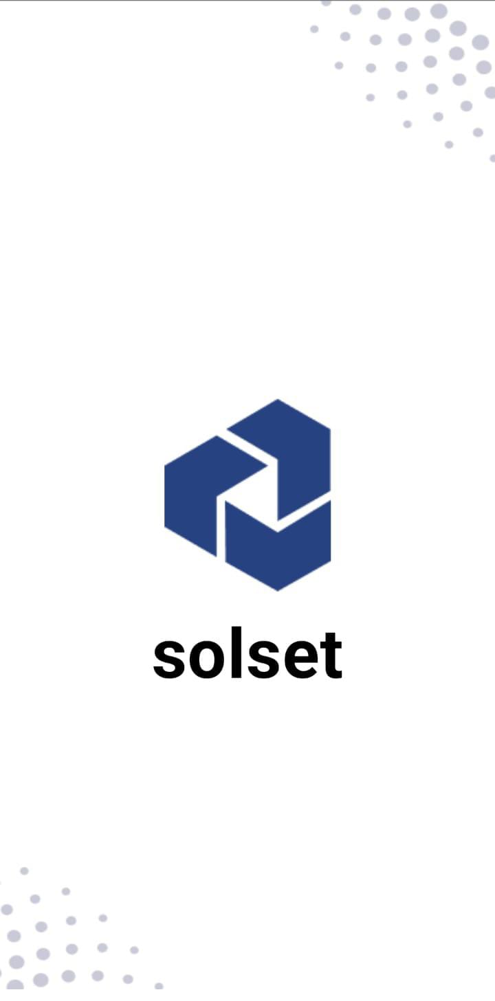 This is the initial screen displayed when you open the Solset app. It shows the Solset logo while the app is loading in the background. Once loading is complete, you will be directed to the main dashboard or login screen.
